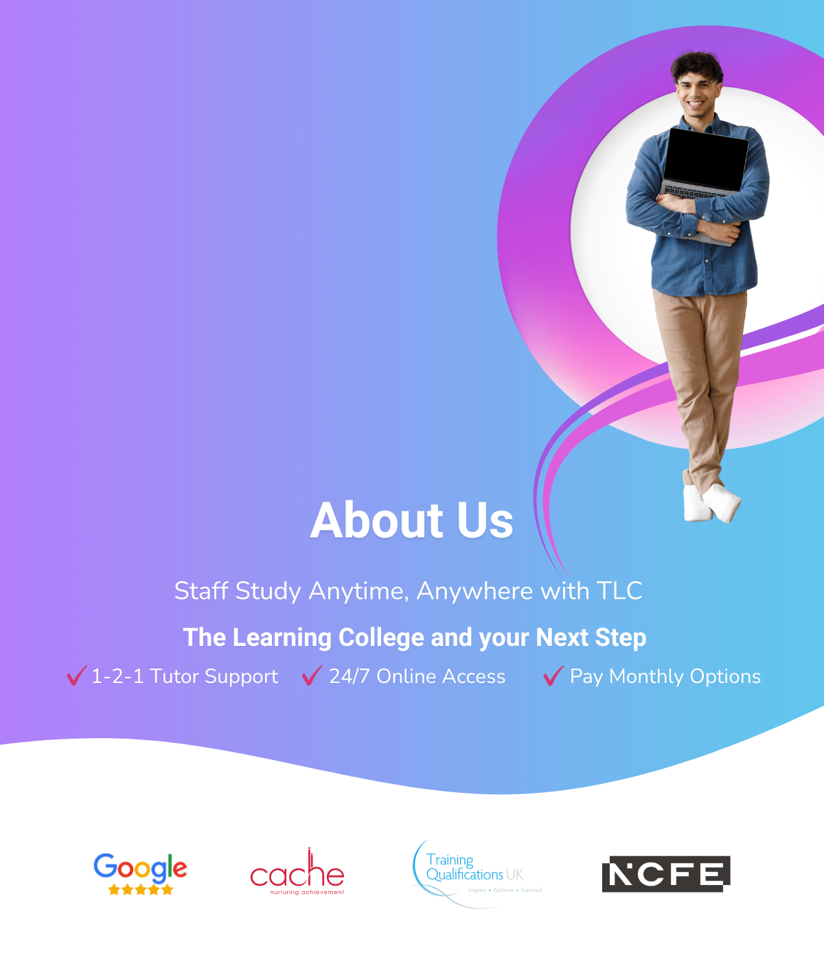 The courses offered with The Learning College have been designed to make learning at home easy and fully flexible to fit around your current lifestyle. We offer full tutor support throughout your course to ensure you are on the right track at all times. We also provide you with all the required materials and resources to ensure you understand every part of each unit. By using various tutoring styles we can be sure you are following the course materials and completing your qualifications to the highest standard possible.