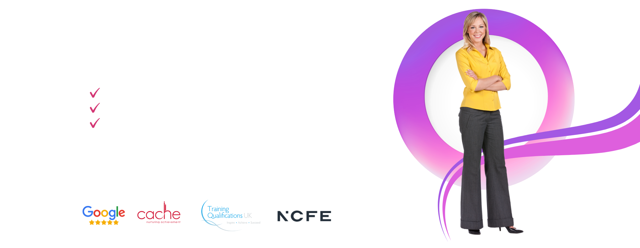 Nationally recognised CACHE and TQUK certifications, regulated by Ofqual.